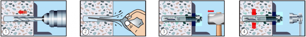 3. Drive anchor carefully with hammer into hole until nut and washer are flush with fixture.